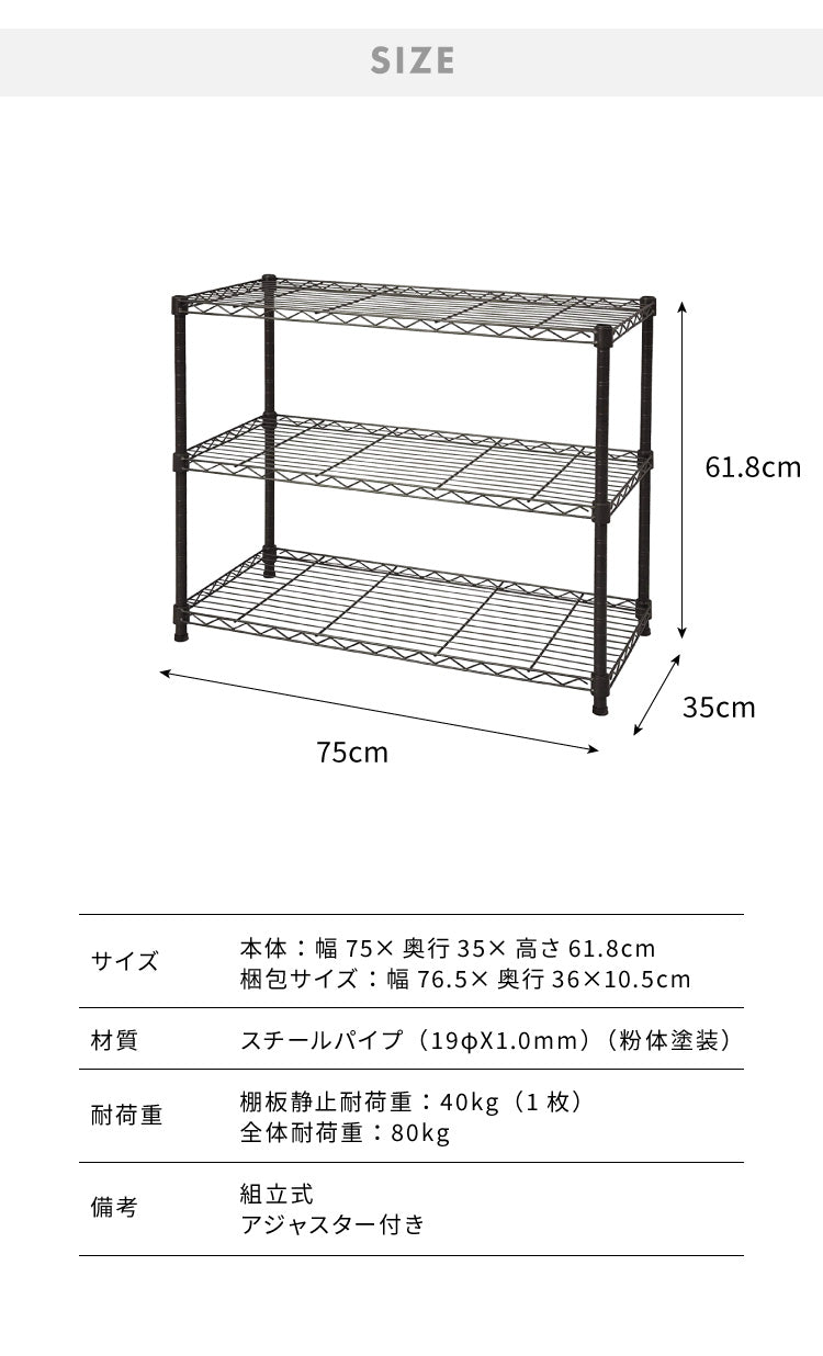 梱包サイズ:幅76.5×奥行36×10.5cm