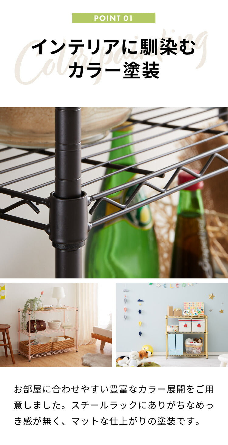 カラースチールラック 3段 耐荷重80kg 幅75cm 奥行35cm オープンラック ラック スチールラック アジャスター付き おしゃれ シンプル キッチン収納 リビング収納 シェルフ 三段 (代引不可)
