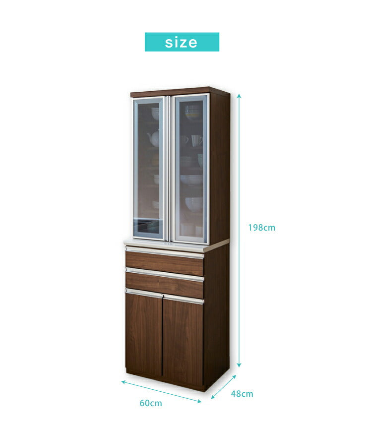 食器棚 幅60cm 高さ198cm モイス付き 【大川家具 国産 ほぼ完成品 開梱設置無料】 キッチンボード 木製 収納 日本製(代引不可)