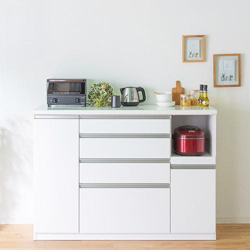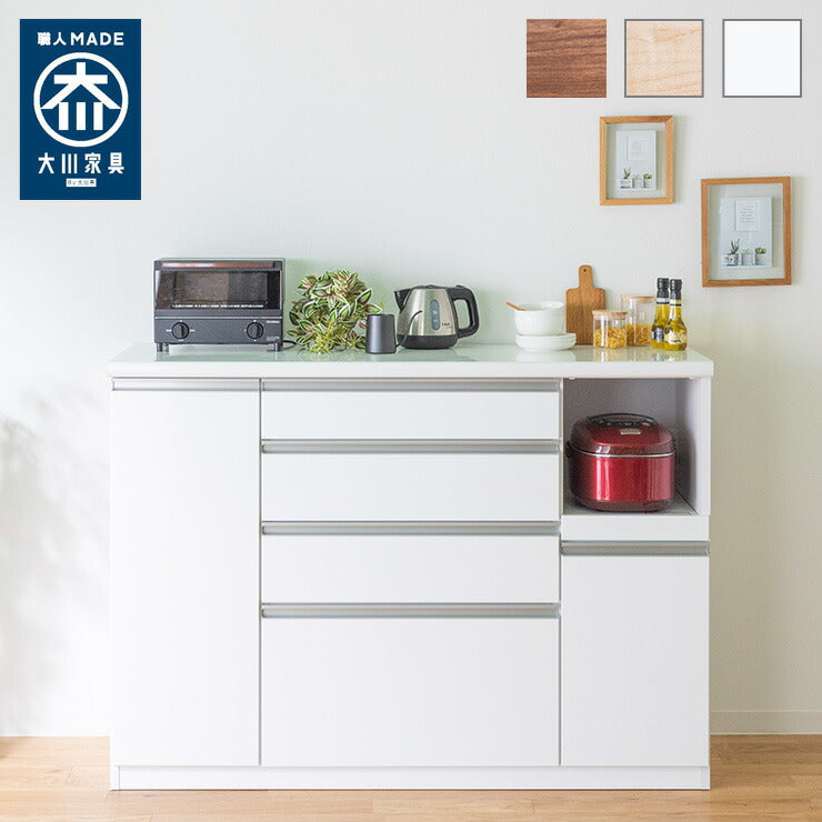 キッチンカウンター 食器棚 幅140cm 高さ100cm モイス付き 【大川家具 完成品 国産 開梱設置無料】 収納 ハイカウンター 日本製(代引不可)