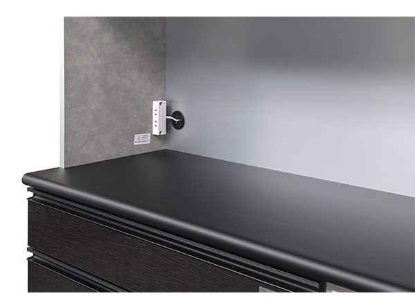 引出全段(5杯)ソフトクローズ機能付き(ヘティヒ社製クアドロレールを使用)、家電収納スペースの上部はモイス材を設置しております