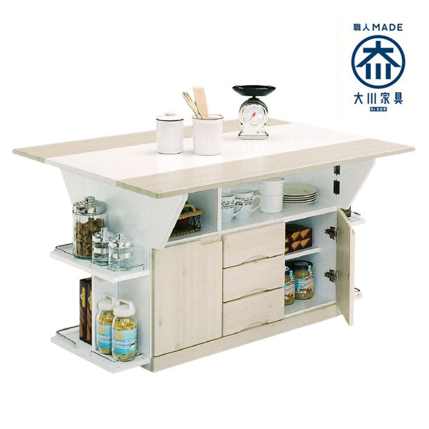 キッチンカウンター キッチンワゴン バタフライテーブル 幅120 奥行90 高さ70 両バタワゴン 国産 大川家具 ナチュラル 伸長式(代引不可)
