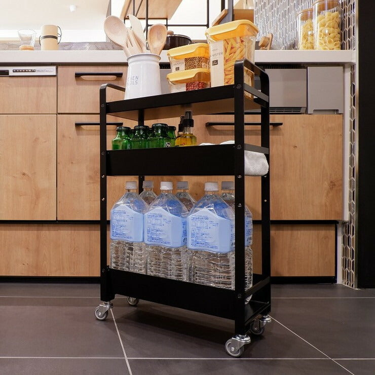 スチールワゴン 3段 幅39.5cm 奥行21cm 高さ66cm キッチンワゴン キャスター付 エラストマー キッチン リビング サニタリー(代引不可)