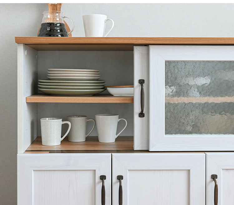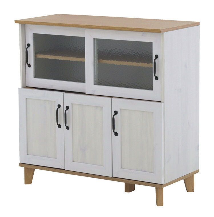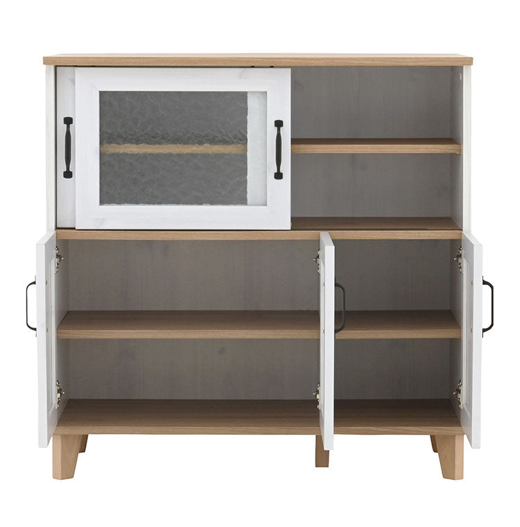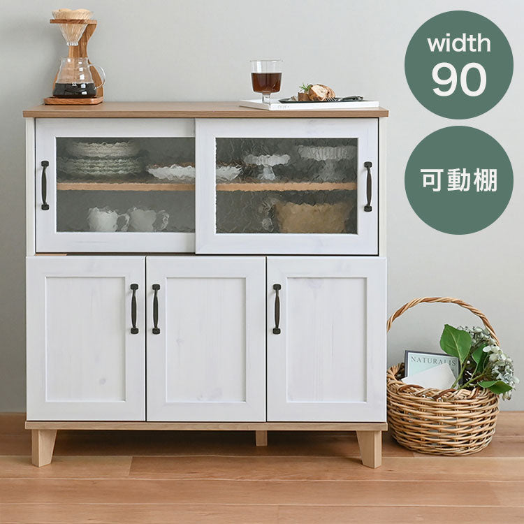 リビストキッチンカウンターRV90-90C WH/GN ホワイト×グレーナチュラル 幅90cm キッチンカウンター 食器棚 カップボード カウンター キッチン収納 キッチンボード