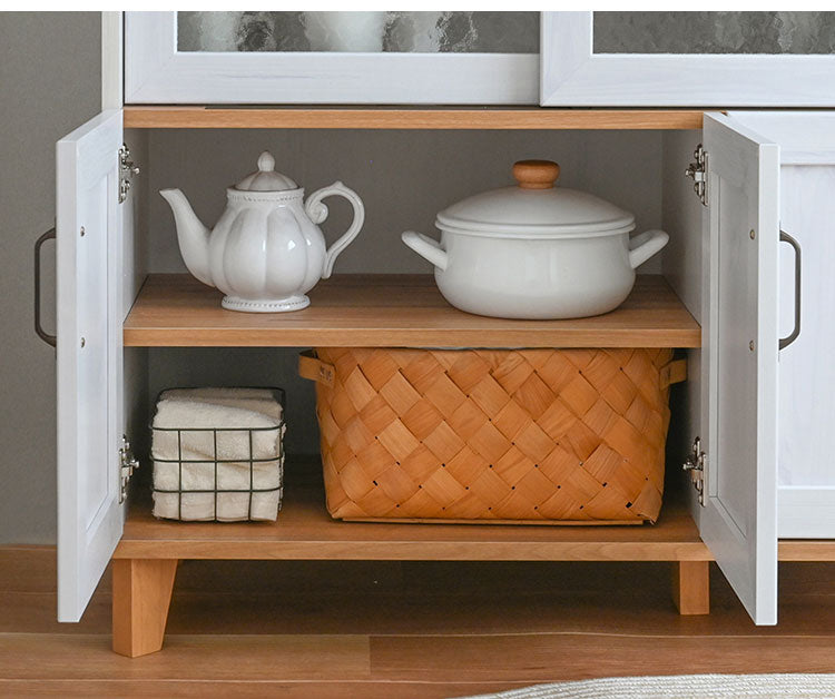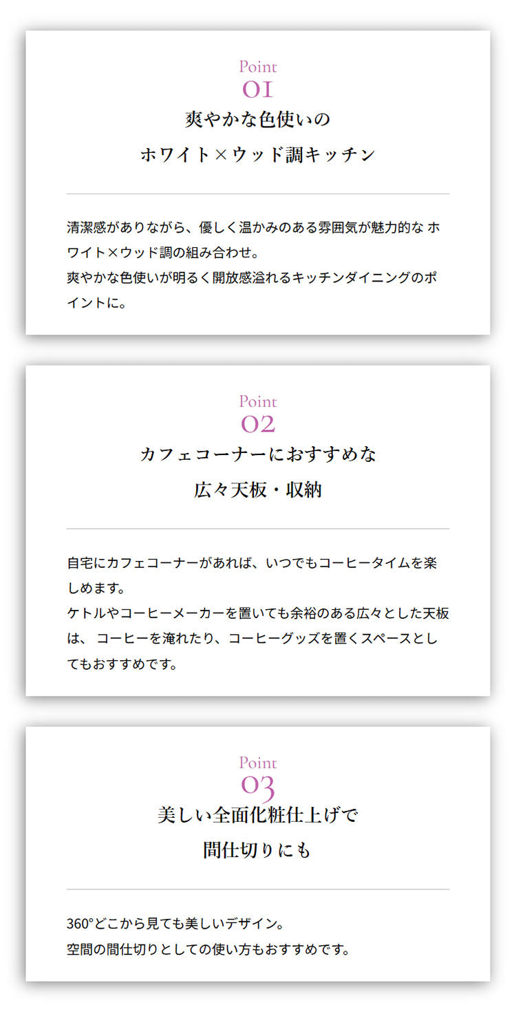 石目調ガラスの扉が美しい、2色付の取っ手が選べる幅90cmのキッチンカウンター。