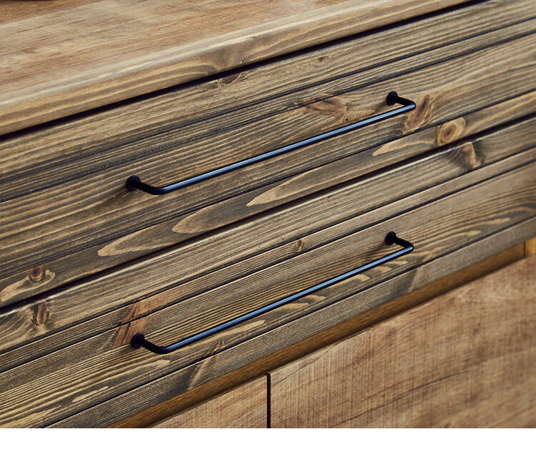 ・上二段引出前板は節有りパイン無垢材を使用しうづくり仕上げをしております。
