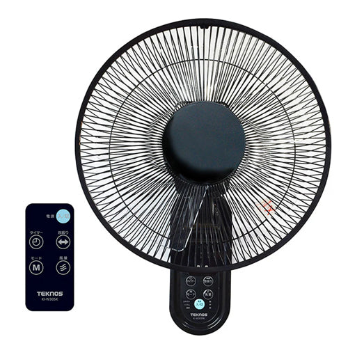 TEKNOS テクノス 壁掛け扇 フルリモコン ブラック リモコン付き 30cm 5枚羽根 フラットガード 首振り 風量3段階 切タイマー付き 静音 サーキュレーター 扇風機 おしゃれ 脱衣所 換気 KI-W305RK
