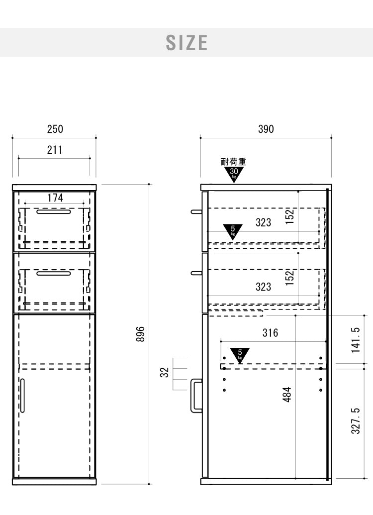 幅250×奥行390×高さ895mm。