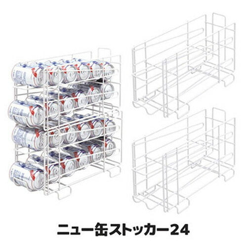 ●350ml缶の飲料水を最大24缶まで収納整理できる●補充は上から、取り出しは下から・・・これは便利
