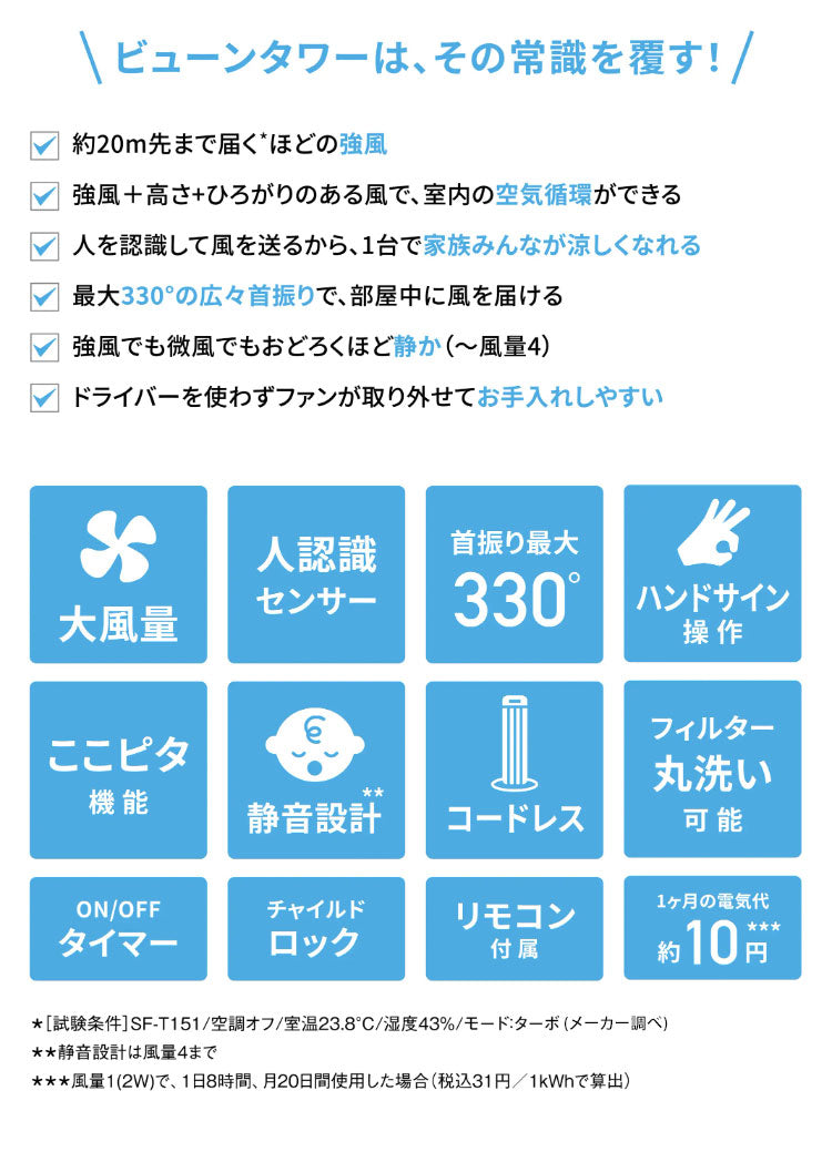 シロカの大風量タワーファン「ビューンタワー」に、“めくばり上手”なモデルが登場!