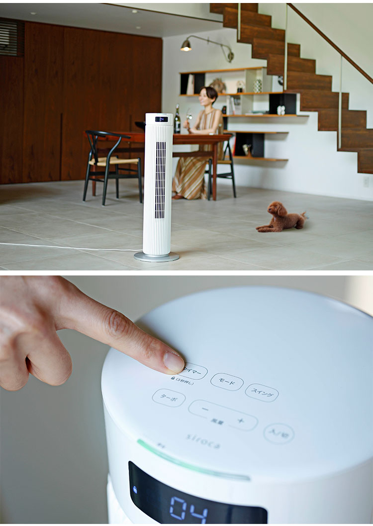 シロカ 大風量タワーファン リモコン付 パワフル 風量調節7段階 サーキュレーター 扇風機 タワーファン おしゃれ リビング キッチン 寝室 おやすみモード ふわビューンUZU SF-T151 siroca