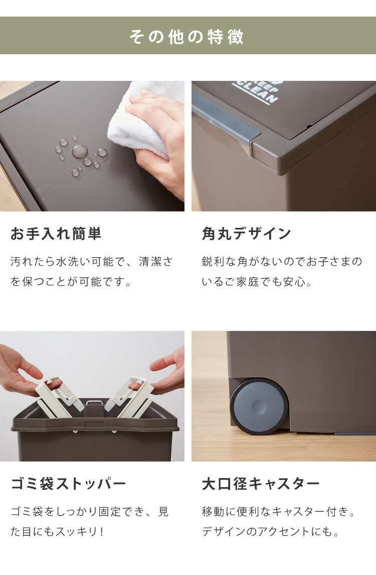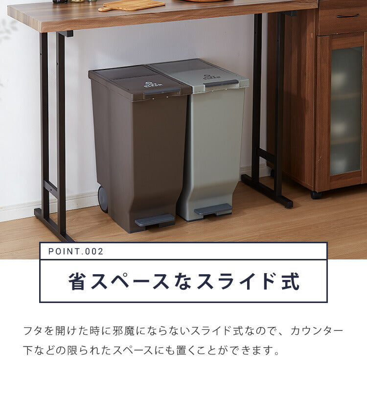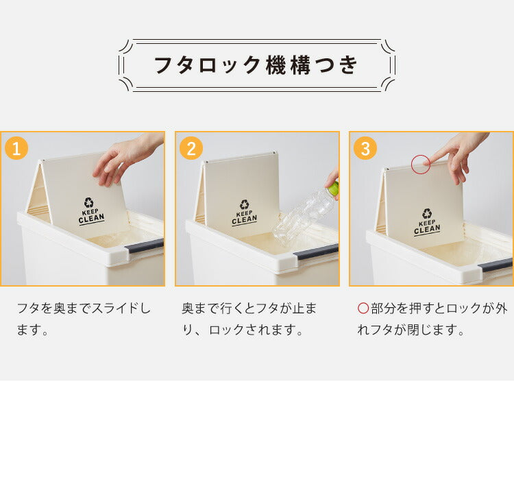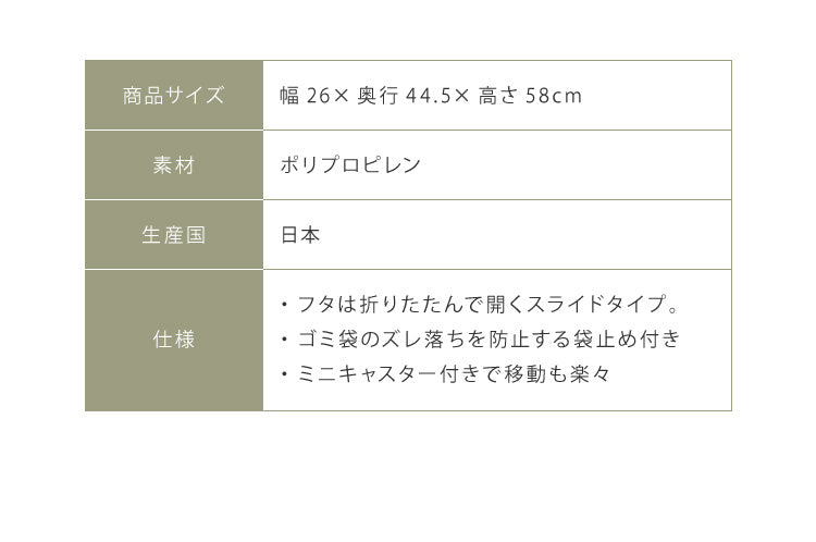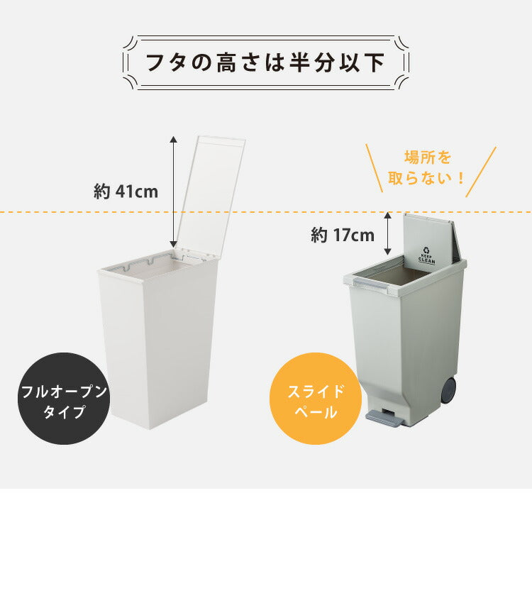 ・フタは折りたたんで開くスライドタイプ。棚下で使用する際ゴミ箱上のスペースが約17cmあれば、本体を引き出さなくてもフタが開閉できます。