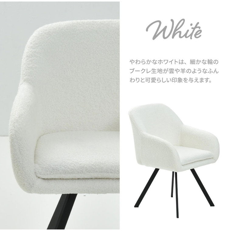 モダンなデザインのブークレ素材の回転機能付きダイニングチェア。