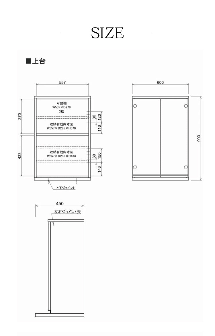 下段:幅55.7×奥行29.5×高さ43.3cm
