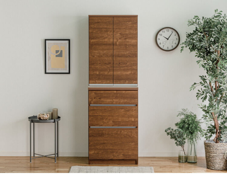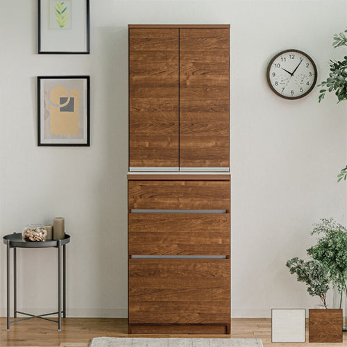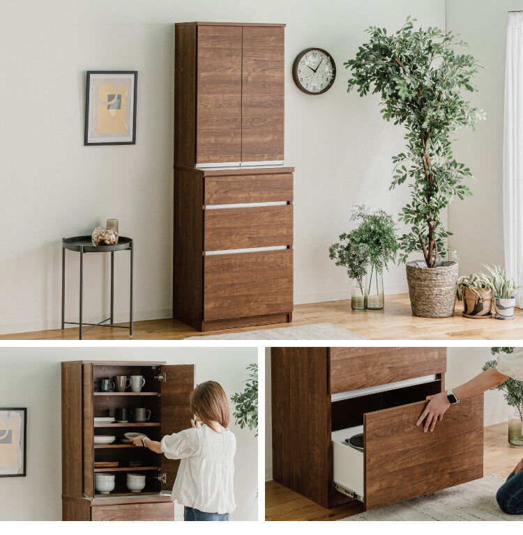 食器棚 キッチンボード 幅60 ハイタイプ 国産 完成品 大川家具 キッチン 収納 ブラウン ホワイト 木目 白 防汚加工 フルオープンレール 日本製 北欧(代引不可)