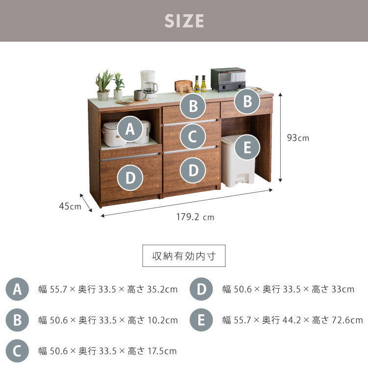 キッチンカウンター 180 幅180 高さ93 オープンスライド ダストボックス ゴミ箱 完成品 国産 開梱設置無料 日本製 レンジ台 カウンター テーブル 食器棚 キッチンボード(代引不可)