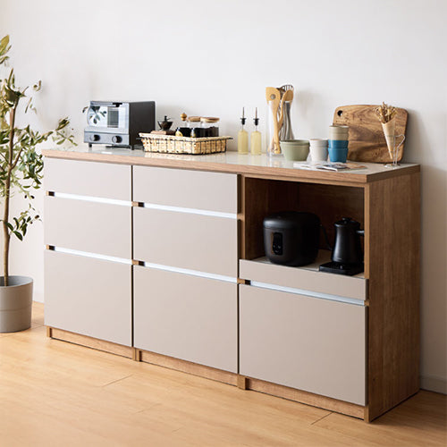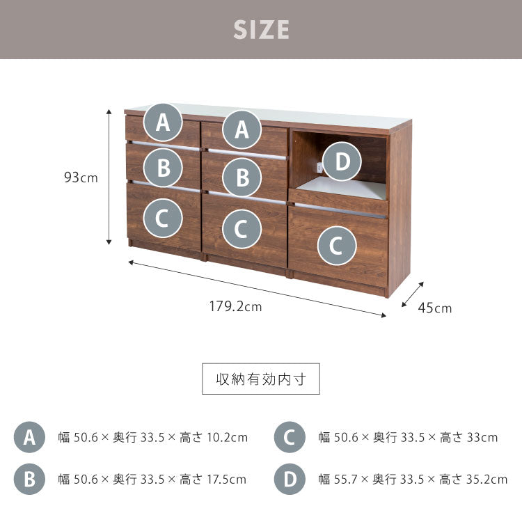 キッチンカウンター 180 幅180 高さ93 引き出し7杯 オープンスライド 完成品 国産 開梱設置無料 日本製 レンジ台 カウンター テーブル 食器棚 キッチンボード 引き出し(代引不可)