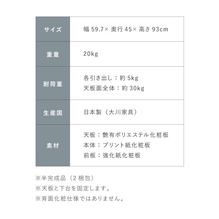 キッチンカウンター 60 幅60 高さ93 ダストボックス ゴミ箱 完成品 国産 日本製 大川家具 レンジ台 カウンター テーブル 食器棚 キッチンボード 引き出し(代引不可)
