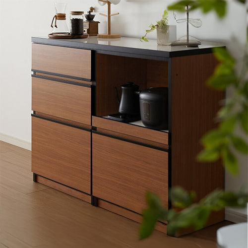 キッチンカウンター 120 完成品 FRON120 引き出し収納 オープンスライド収納 レンジ台 間仕切り 背面化粧 開梱設置無料 奥行45 高さ93 フルオープンレール ポリエステル化粧板(代引不可)