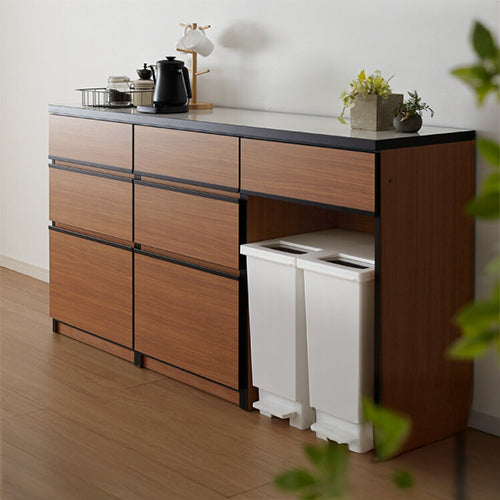 キッチンカウンター 180 完成品 FRON120 引き出し収納×2 ダストボックス収納 モイス加工 ごみ箱 間仕切り 背面化粧 開梱設置無料 奥行45 高さ93 フルオープンレール ポリエステル化粧板(代引不可)