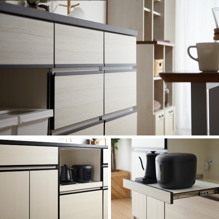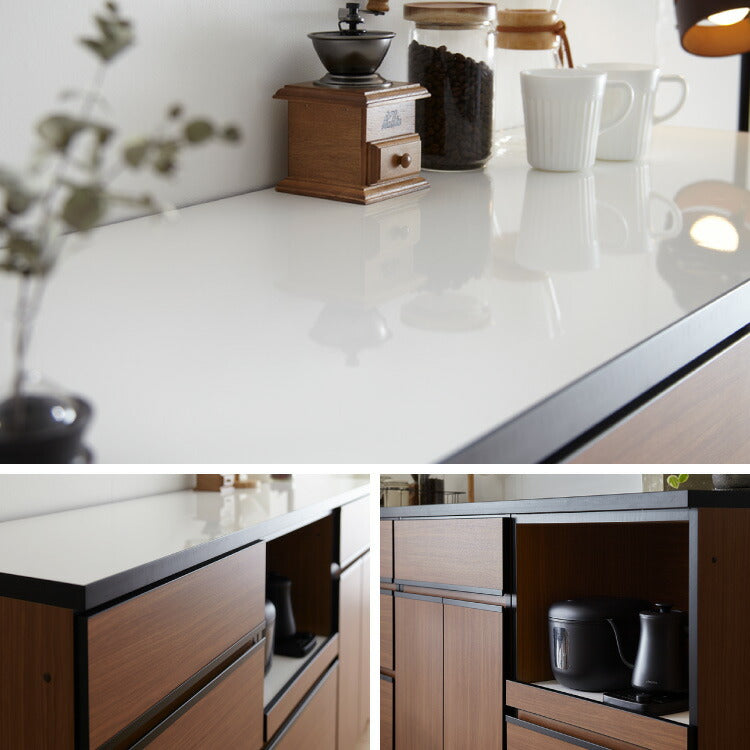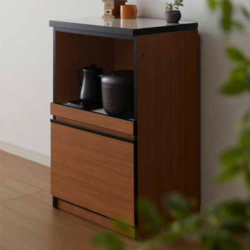 キッチンカウンター 60 完成品 FLON60 オープンスライド収納 レンジ台 間仕切り 背面化粧 奥行45 高さ93 アルミ取っ手 北欧 フルオープンレール アイランドキッチン ポリエステル化粧板(代引不可)