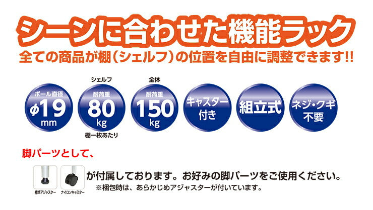 Luminous(ルミナス) ワゴンラック フィールシリーズ スチールラック スチール棚 キッチンワゴン メタルシェルフ