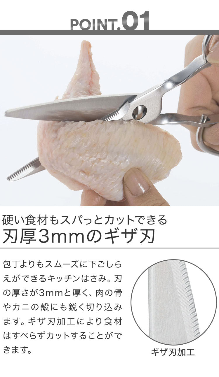 刃部厚みが3mmあるのでカニの殻や牛乳パックなどの厚物にも対応します。