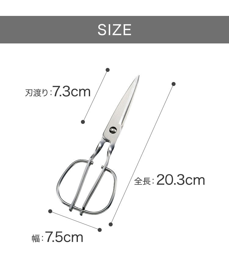 鳥部製作所 キッチンスパッター KS-203 日本製 オールステンレス キッチンバサミ キッチンハサミ 料理ハサミ 食洗機対応 燕三条(代引不可)【メール便】