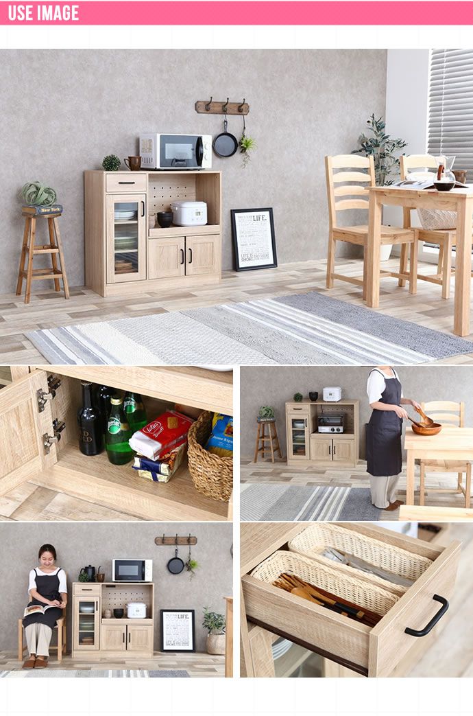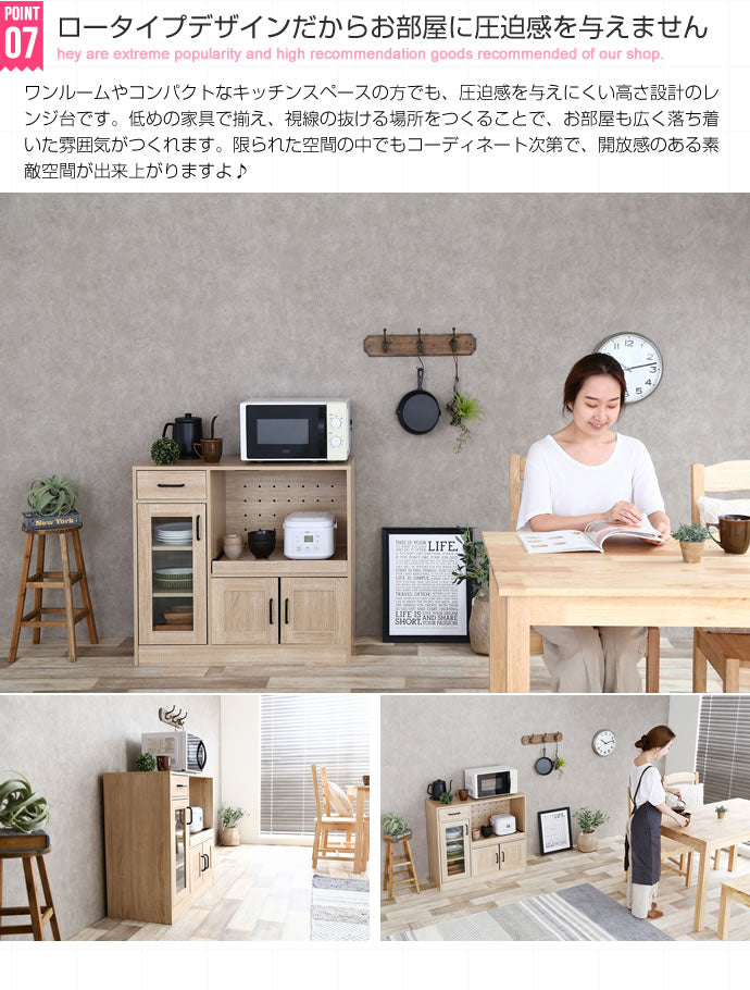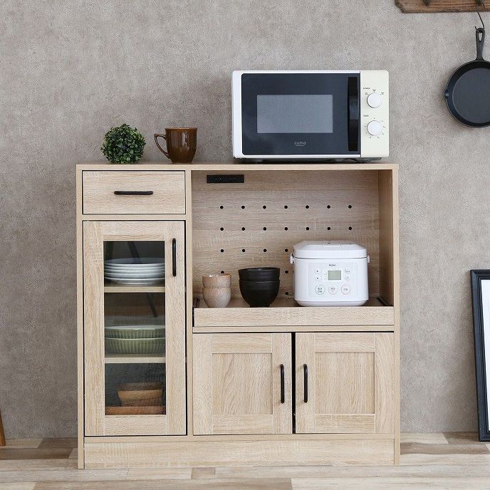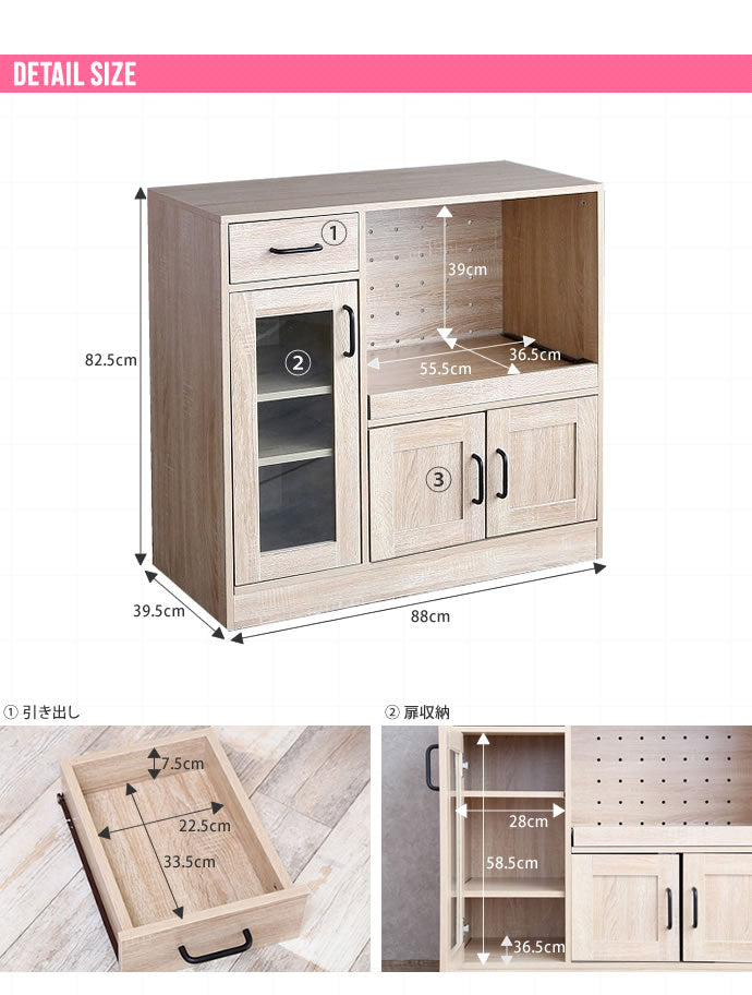 レンジ台 食器棚 キッチン収納 キッチンキャビネット 幅88 大型レンジ対応 ミニ食器棚 収納 引き出し 扉付き スライドレール ロータイプ キッチンラック キャビネット(代引不可)