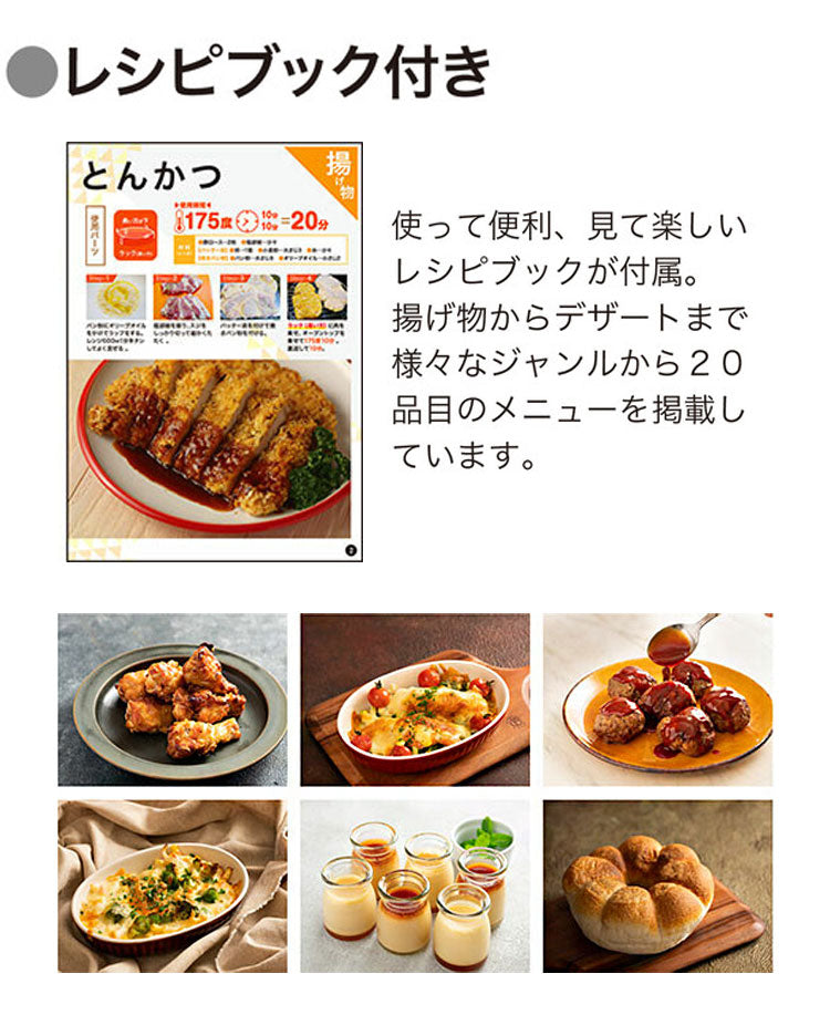 本体(オーブントップ、ベース)、ポット、網、ラック、拡張リング、取扱説明書(保証書付)、レシピブック