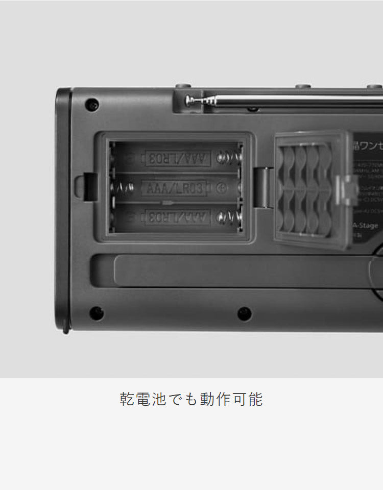 リチウムイオン電池内蔵。急な災害時などで、便利な3種の電源・充電仕様。