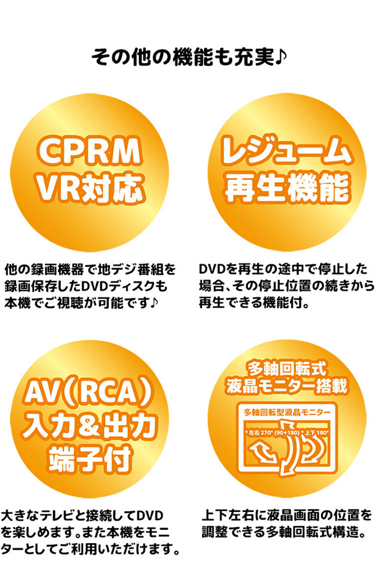対応フォーマット(ディスク):DVDビデオ・DVD-R/RW(CPRM/VR対応)・オーディオCD・CD-R/RW