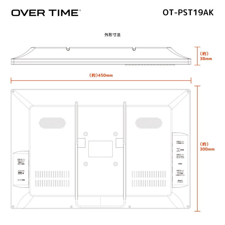 スマートテレビ 19インチ 地デジチューナー搭載 androidスマートTV テレビ 19型 液晶テレビ スマホ連動 Bluetooth chromecast YouTube NETFLIX OT-PST19AK OVER TIME