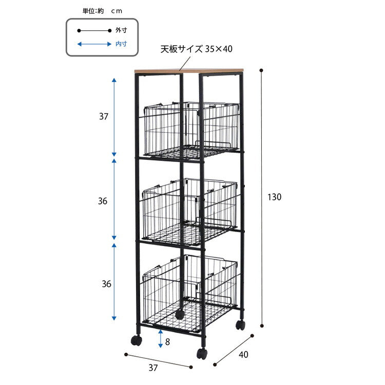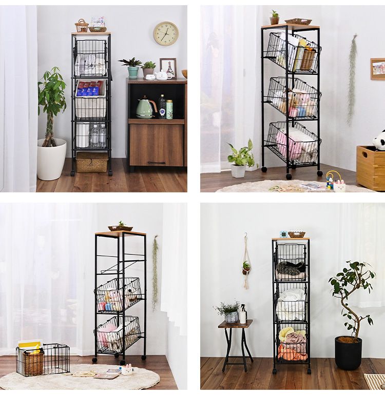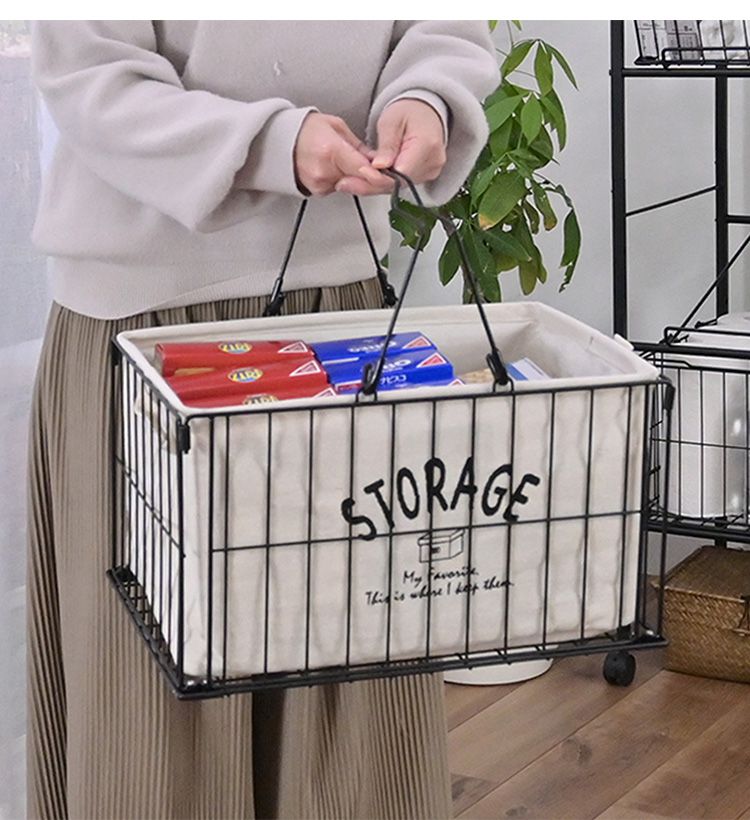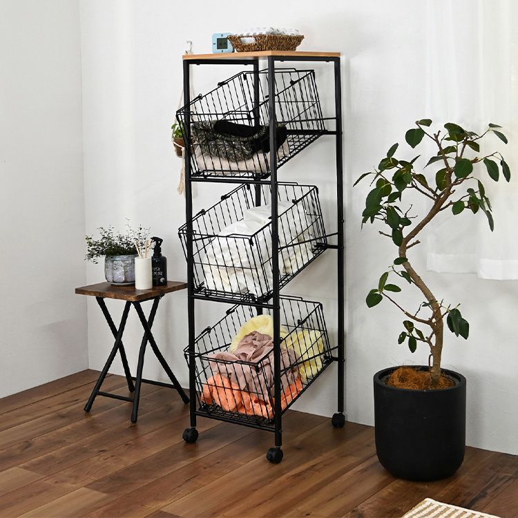 キッチンワゴン バスケット付き 3段 持ち運べるかご付き キャスター付き 野菜ストッカー おもちゃ収納 すき間収納 隙間収納 洗濯かご おしゃれ ランドリー収納 収納 ランドリーラック 洗濯物入れ(代引不可)