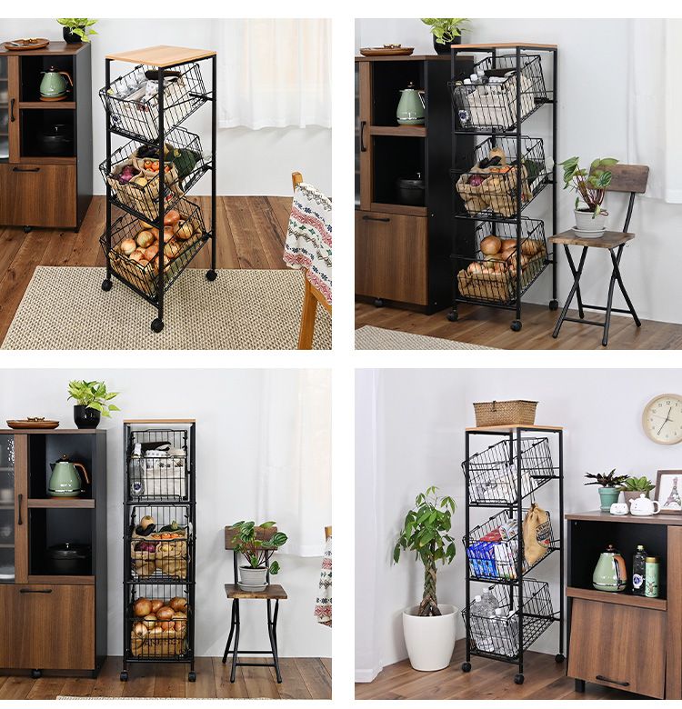 ・かごは斜めにも置くことができ、物が出仕入れしやすい。