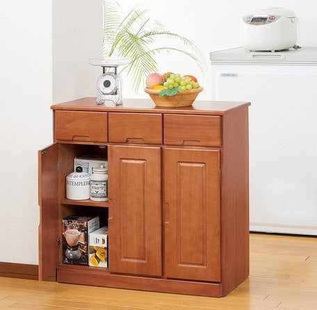 キッチンワゴン 天然木カウンターワゴン 3枚扉 天然木 ワゴン キッチンカウンター キッチン収納 カウンター キッチン(代引不可)