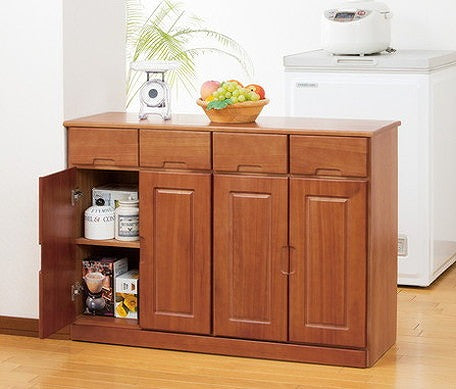 キッチンワゴン 天然木カウンターワゴン 4枚扉 天然木 ワゴン キッチンカウンター キッチン収納 カウンター キッチン(代引不可)