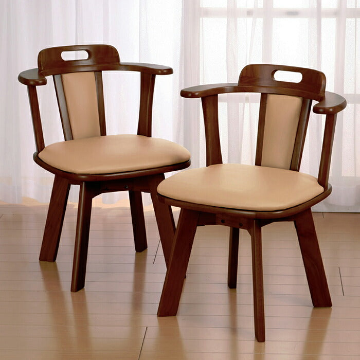 ダイニングチェア 回転式 天然木 肘付き 2脚組 天然木肘付き回転ダイニングチェア ダイニング イス 椅子 2個セット(代引不可)