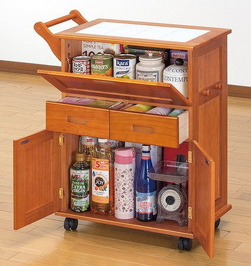 天然木フラップ式キッチンワゴン