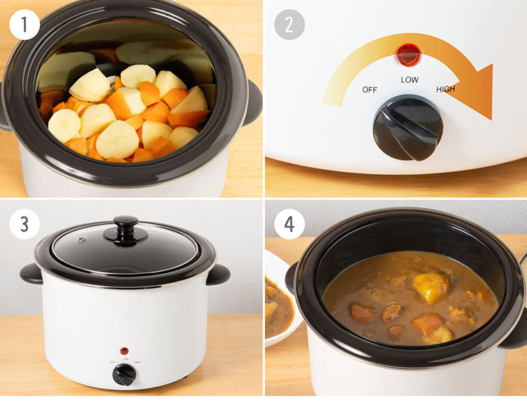 時間をかけてじっくり調理するので、しっかり味が染み込み、焦げ付きや煮崩れをおこしにくいです