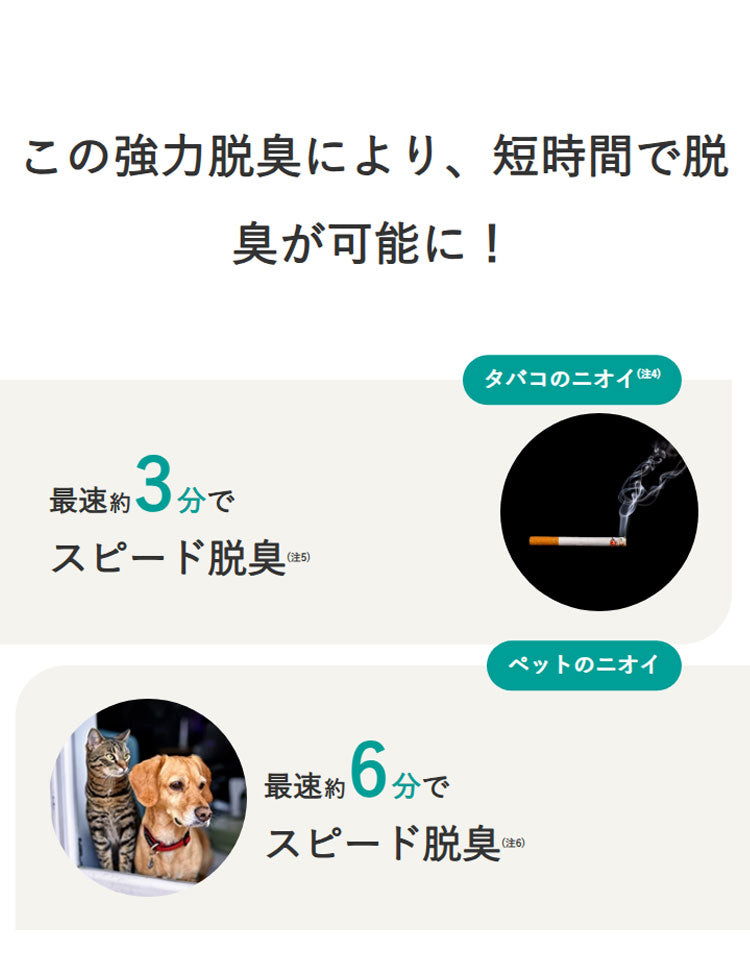 急な来客時も素早く脱臭!高速メガフィルターを搭載、強い臭いも分解・脱臭します。