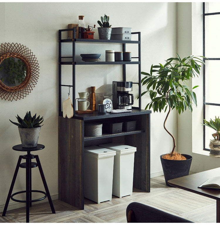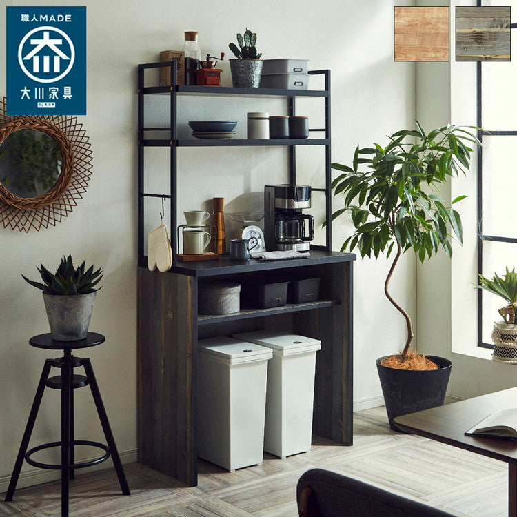 日本製 食器棚 レンジ台 幅90 ゴミ箱 収納 ごみ箱上ラック 国産 大川家具 キッチンボード 棚板高さ調整 キッチンラック レンジラック 収納棚 キッチン収納 ゴミ箱ラック おしゃれ(代引不可)