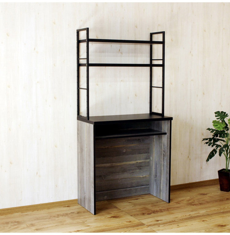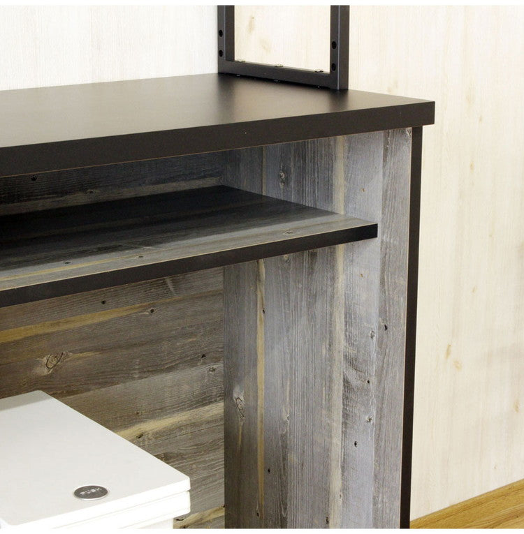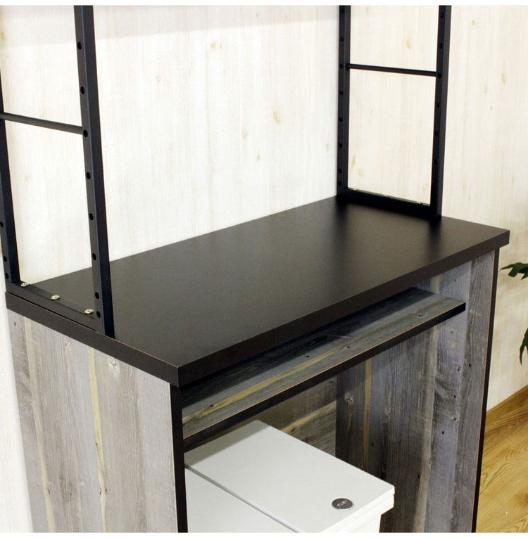 古木風木目柄のアイアン仕様の異素材カップボード。安全安心の国産品。