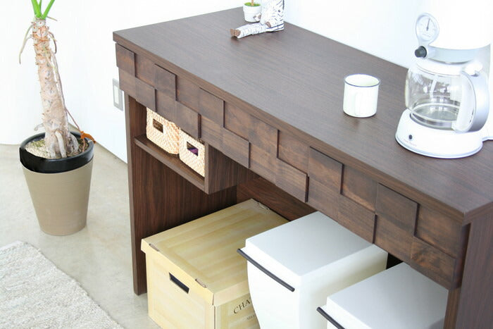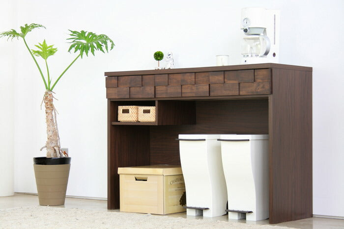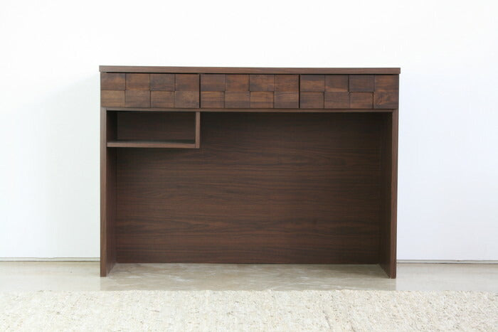 【サイズ】本体:W1196×D445×H850mm【素材】天板:強化紙、前面:アルダー無垢・オイル塗装、側:プリント【その他】天板耐荷重:15kg、棚板耐荷重:5kg