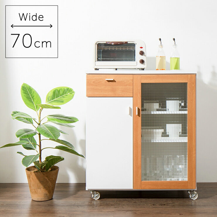 日本製 キッチンカウンター 幅70cm 完成品 キッチンワゴン 国産 ホワイト コンパクト キッチンキャビネット 食器棚 キッチン収納 PLUK パルク(代引不可)