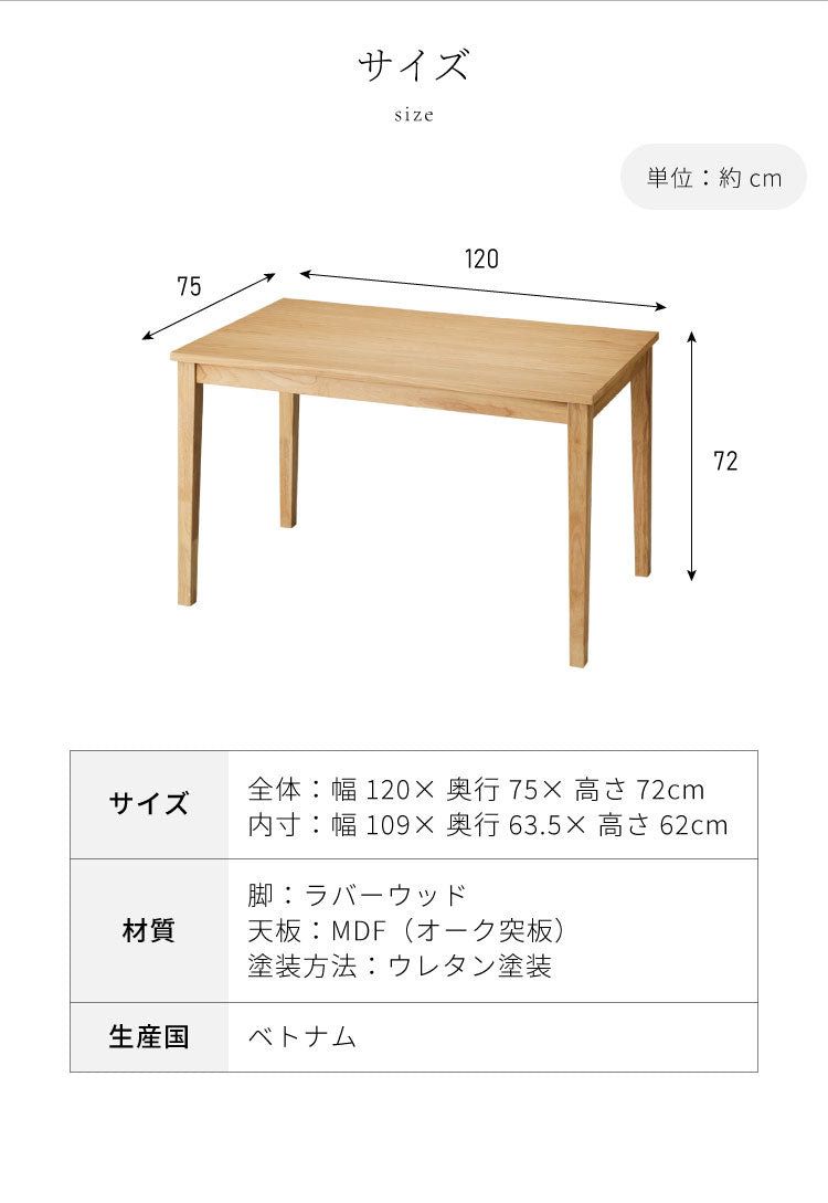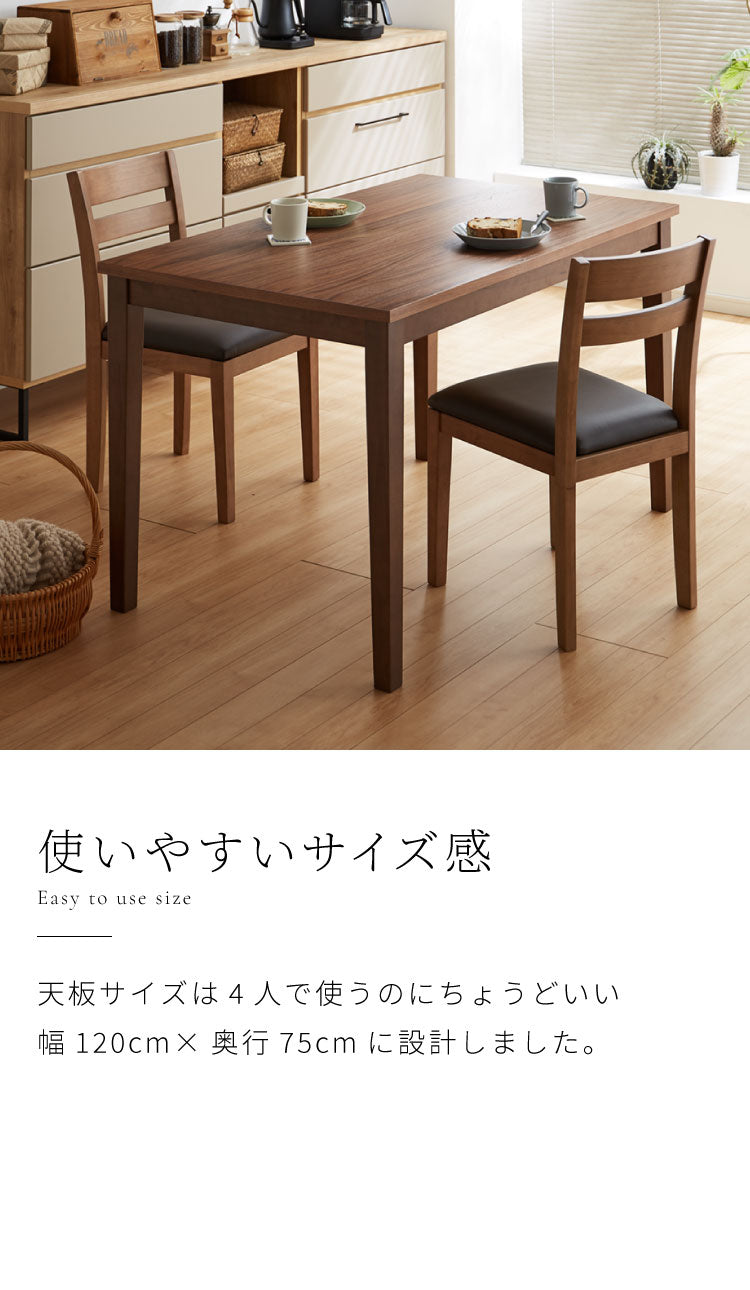 ・4人で使うのにちょうどいい幅120×奥行75cmのダイニングテーブル