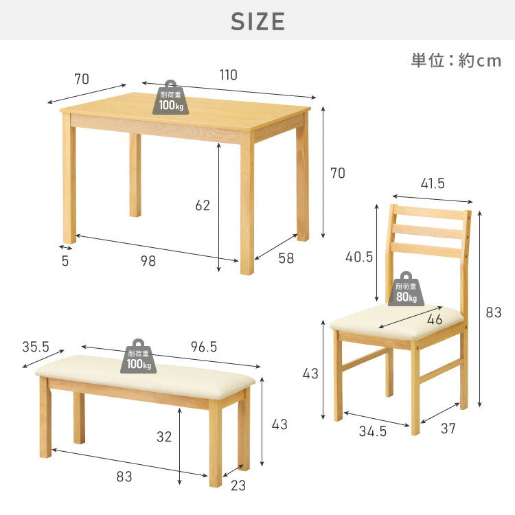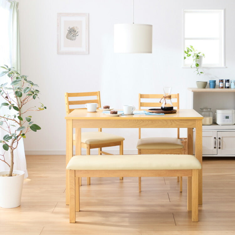 ・テーブル、チェア、ベンチがそろったダイニング4点セットです。