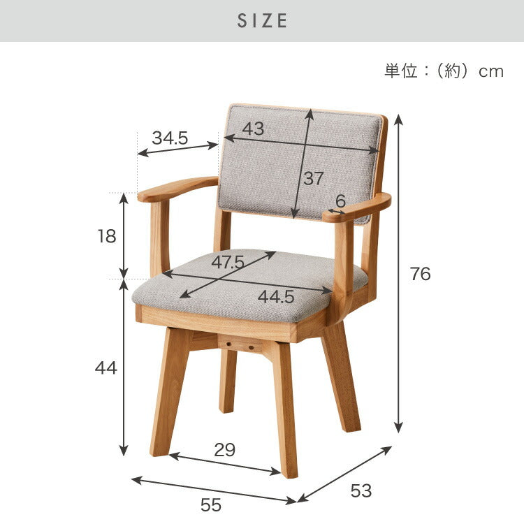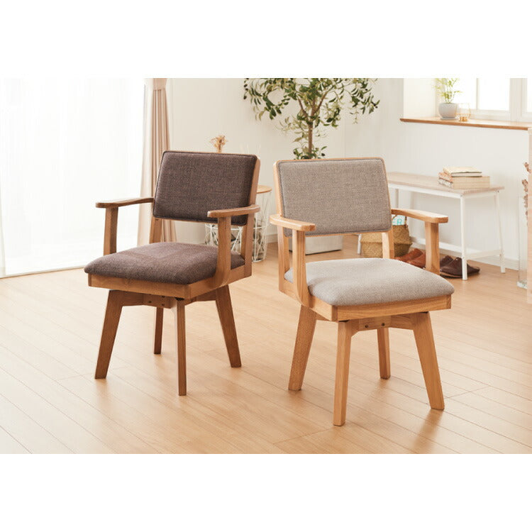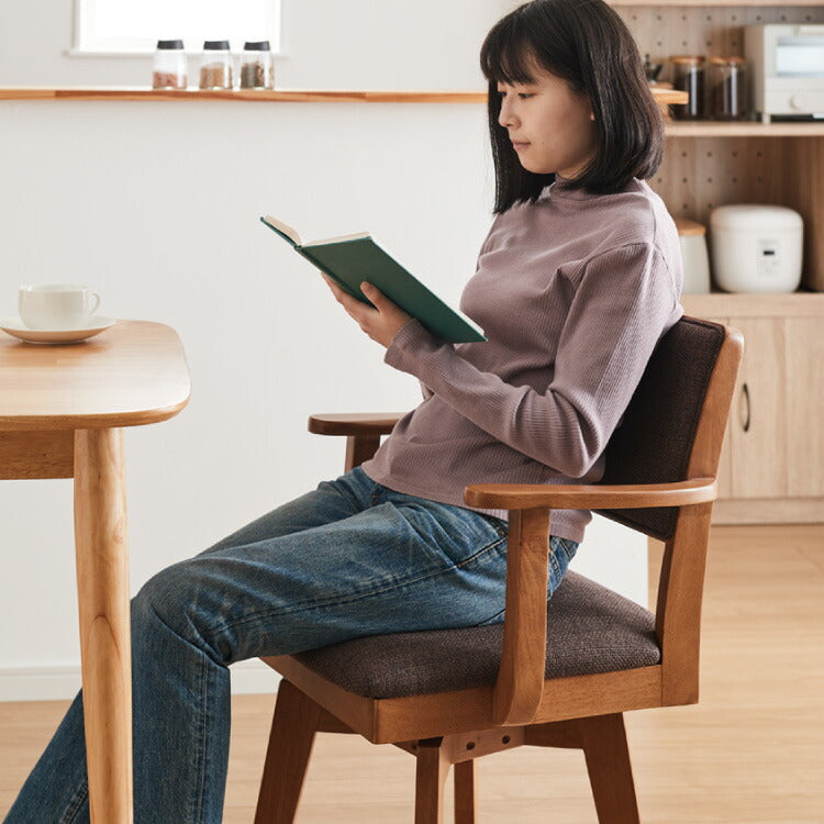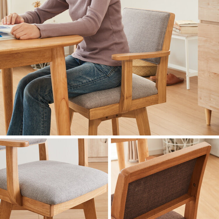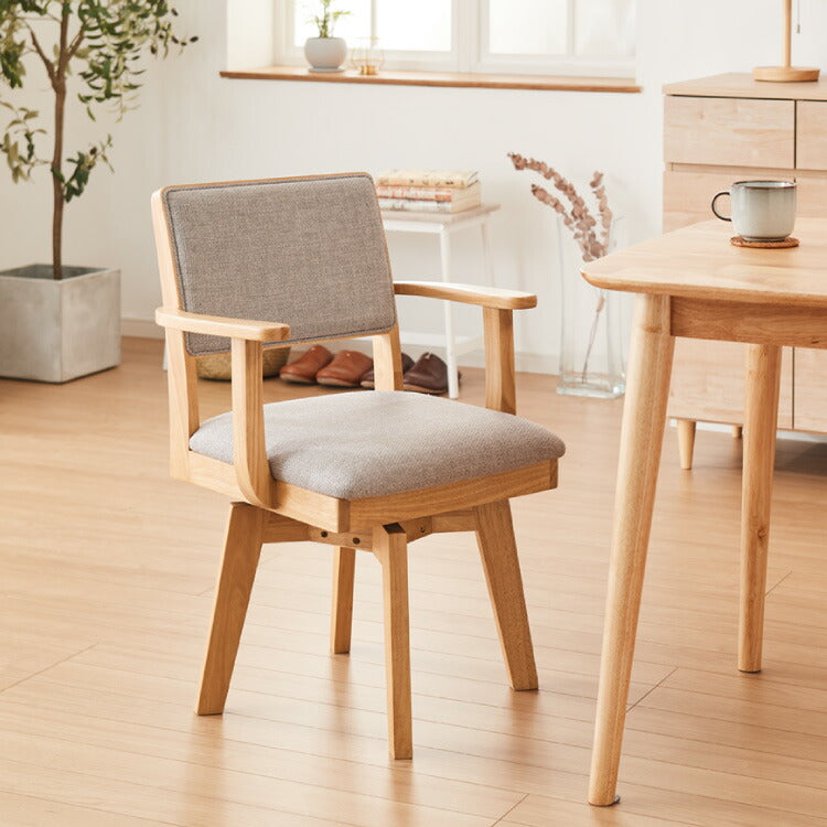 ・肘掛けと回転機能がついている、立ち座りしやすいダイニングチェア「ニコ」です。