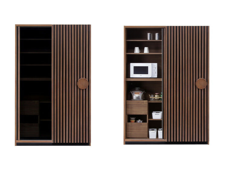 食器棚 キッチンボード 完成品 幅120 奥行52 高さ196 引き戸 開梱設置無料 ハイタイプ ウォールナット 天然木 おしゃれ 大容量 キッチン 収納 ブラックガラス リンク(代引不可)