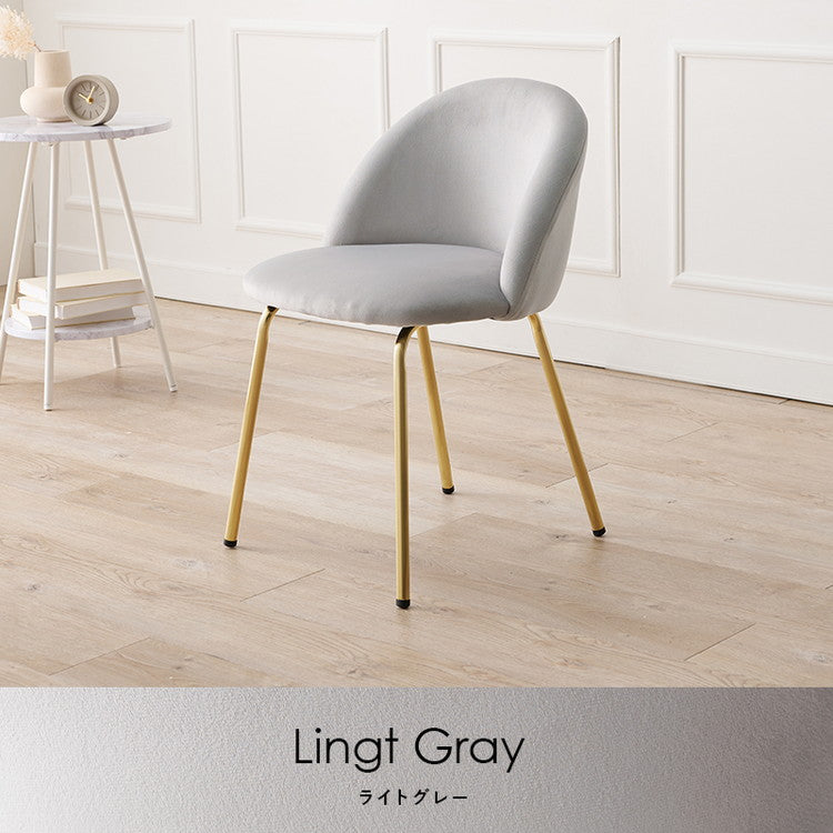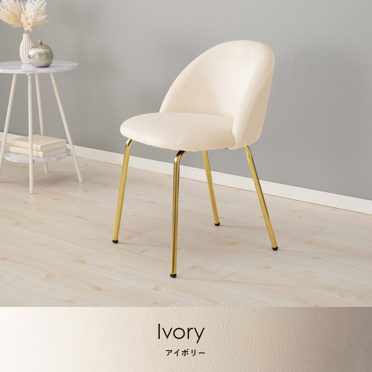 ころんとした座面にゴールドの脚がフェミニンなインテリアチェア。背もたれのカーブが背中にフィットします。